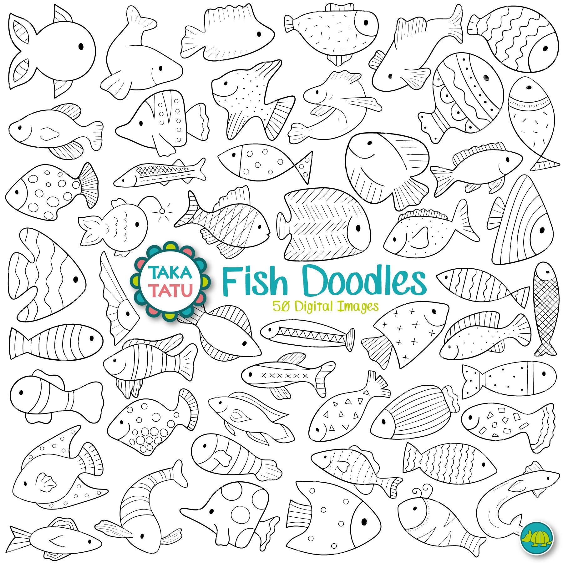 Fish Doodles Digital Stamp Black And White Clipart Fish Etsy Singapore